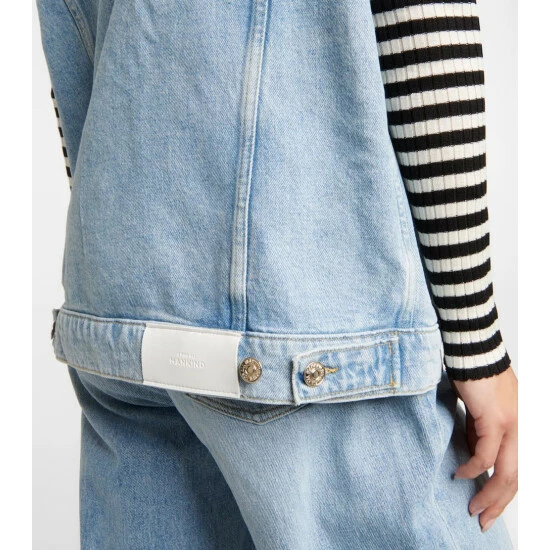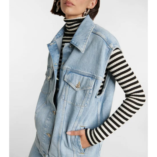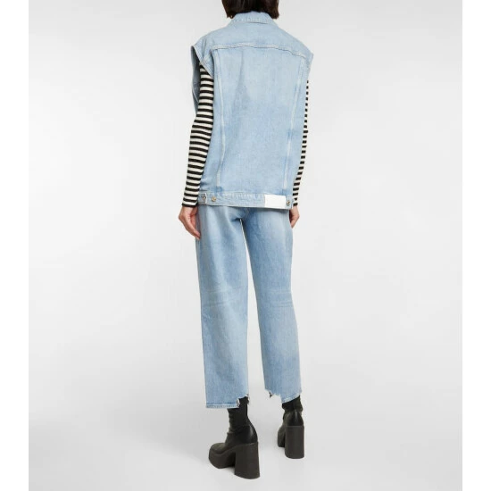 The Airwave vest from 7 For All Mankind is made from bleached denim. It has an oversized cut, two flap pockets, and logo-engraved buttons in silver-tone metal.
