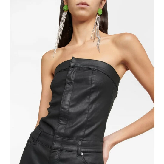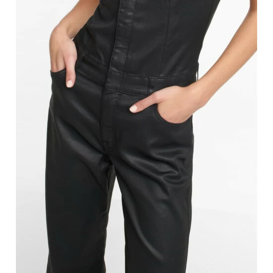 This jumpsuit from 7 For All Mankind is made from coated denim. It has a bustier bodice and wide-cut legs.