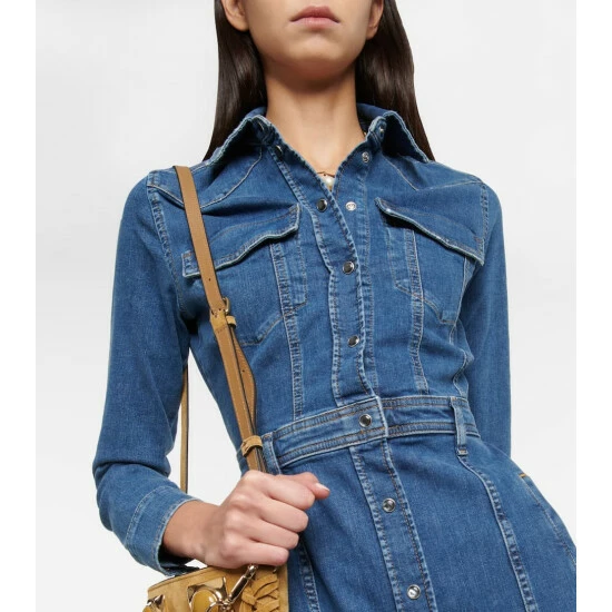 Casual yet elevated, the Luxe dress from 7 For All Mankind has a fitted silhouette and a straight midi hem. It’s made from stretchy denim and fastens with snap buttons at the front.