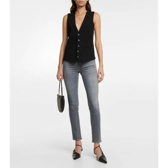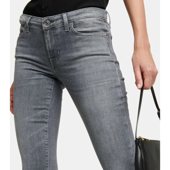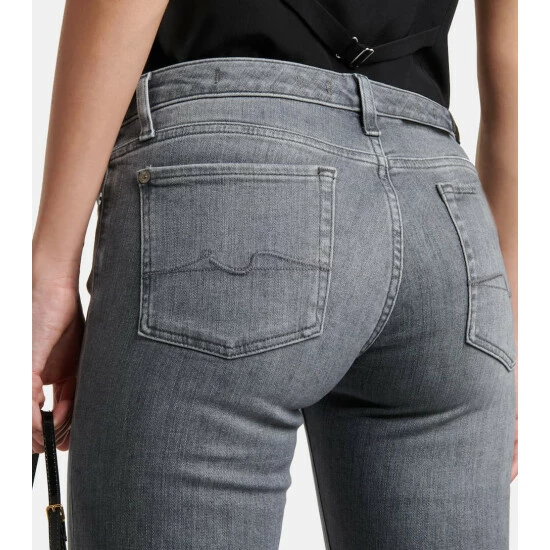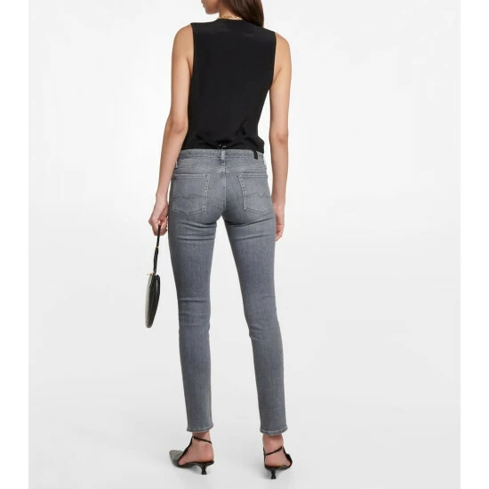 The Pyper Crop Slim Illusion jeans from 7 For All Mankind will be your go-to for easy everyday wear. This mid-rise skinny pair is made from comfortable gray denim that ensures comfort and creates a flattering fit.