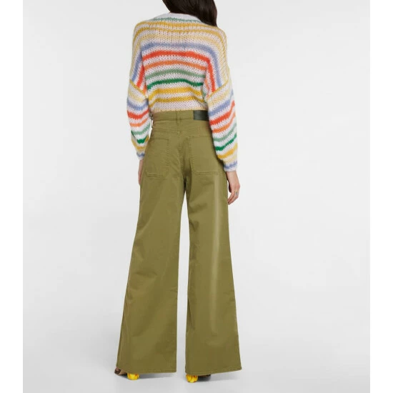 The Utility Zoey jeans from 7 For All Mankind are made from green denim with oversized side pockets. This style sits high on the hips and features wide legs and a logo-embossed leather patch.