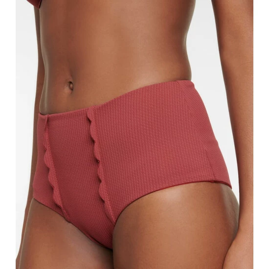 Marysia’s Chesapeake bikini bottoms are traced with trademark scalloped trims along the front and back. Made from tactile swim jersey, they have a high rise for generous coverage.