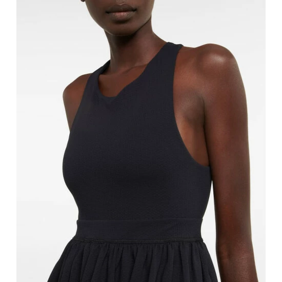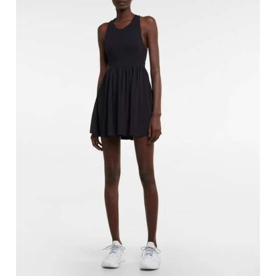 The Doris tennis minidress from Marysia is designed for wear both on and off the court. Made from stretch jersey in black, it has an airy, pleated skirt and includes padded cups for support.