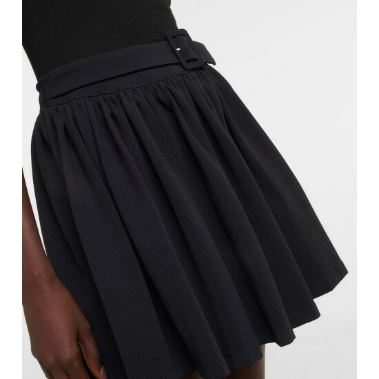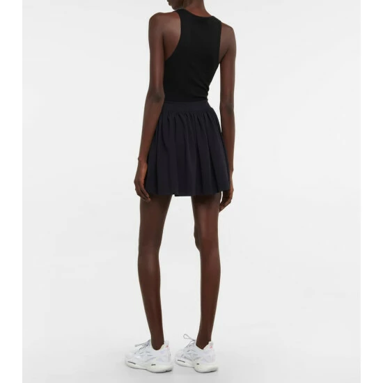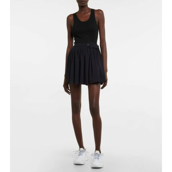 You can exercise in comfort and style thanks to Marysia’s feminine designs. The Martina design is made from signature basket-weave fabric in black and features built-in shorts, a pleated miniskirt, and an attached belt.