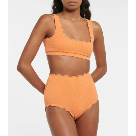 The Mini Palm Springs bikini top is made from Marysia’s signature, textured basket-weave fabric that dries quickly. Finished with scalloped edges, this orange style offers minimal coverage.