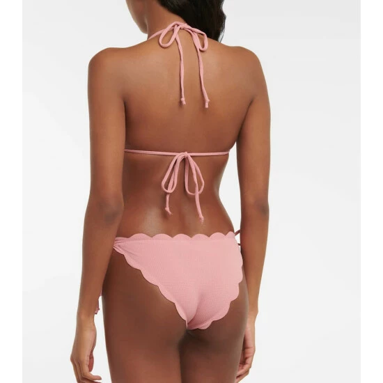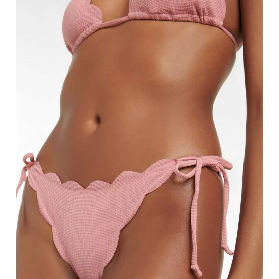 Marysia’s most recognizable feature is the hand-cut scalloped edges that do without stitching or elastic for a more flattering fit. The Mott bikini bottoms offer minimal coverage and come with adjustable side ties.