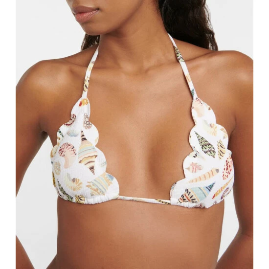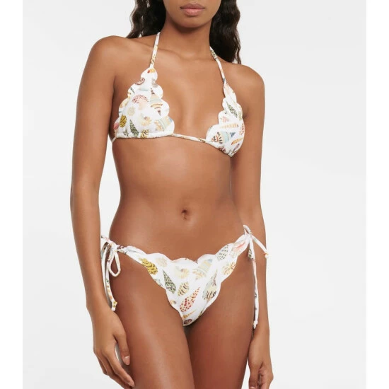 Marysia’s most recognizable feature is the hand-cut scalloped edges that do without stitching or elastic for a more flattering fit. Printed with a seashell motif, the Mott bikini bottoms offer minimal coverage and come with adjustable side ties.