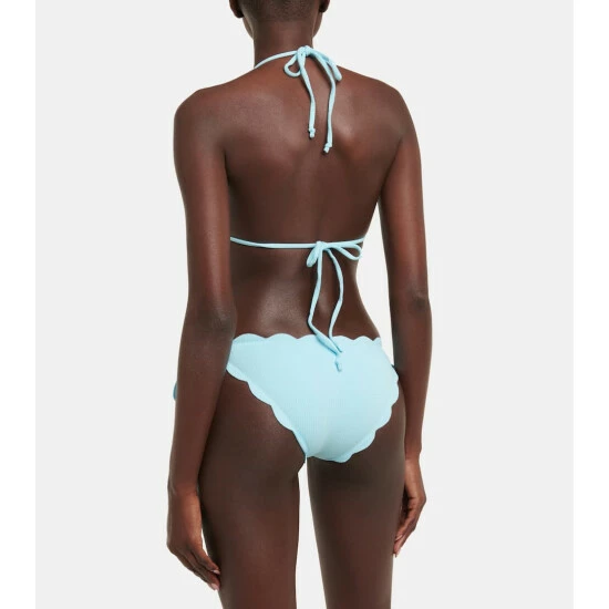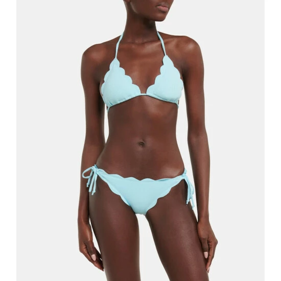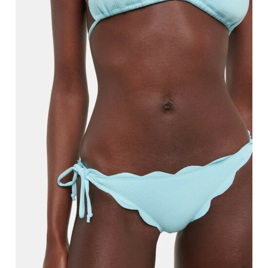 Marysia’s most recognizable feature is the hand-cut scalloped edges that do without stitching or elastic for a more flattering fit. The Mott bikini bottoms offer minimal coverage and come with adjustable side ties.