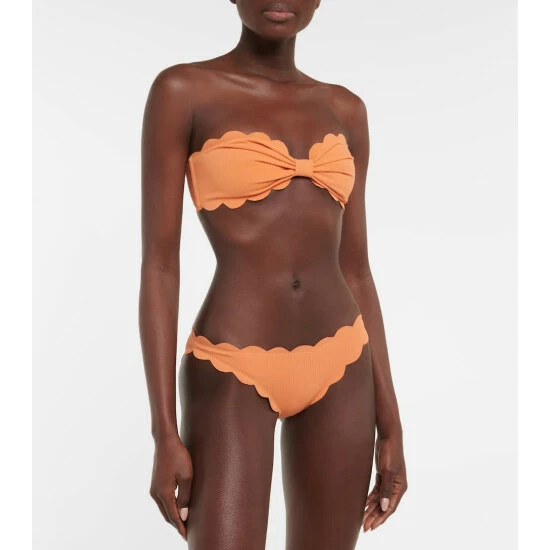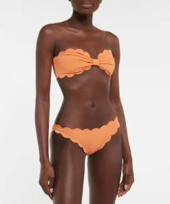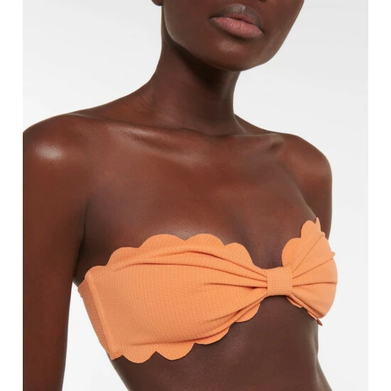 Be more than prepared for a relaxing beach day with this strapless bikini top from Marysia. This piece is designed to be reminiscent of a bow-tie and features adorable scalloped lining.